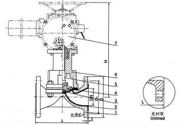 部件列表:1.阀体 2.隔膜 3.阀瓣 4.阀杆 5.阀盖 6、手轮