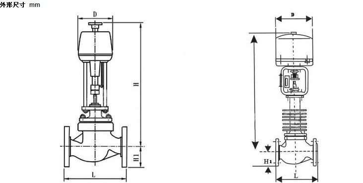 电子式电动单座调节阀 主要外形尺寸