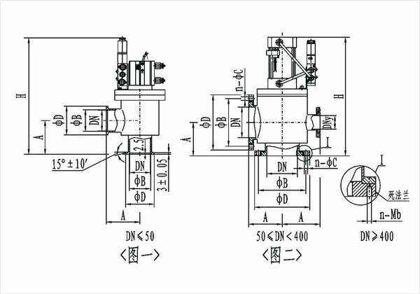 型号 | 通径(DN) | ΦD | ΦB | H | A | n-ΦC | DNy(预抽口) | n-Mb | 法兰标准 |